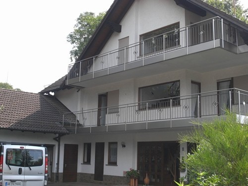 Geländer mit Stabfüllung aus 14mm Rund. Zwischen Unter- u. Obergurt aus Rechteckrohr u.