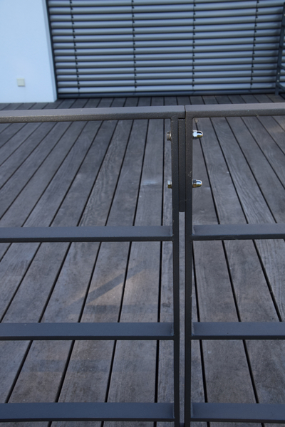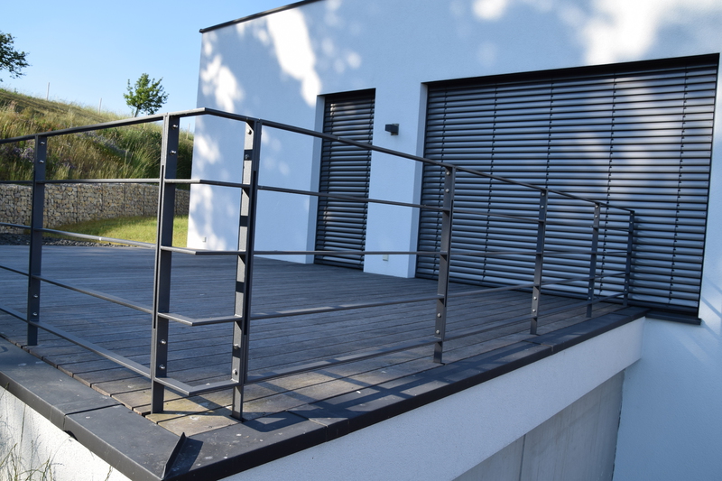 Pfosten und Handlauf feuerverzinkt und schwarz beschichtet.